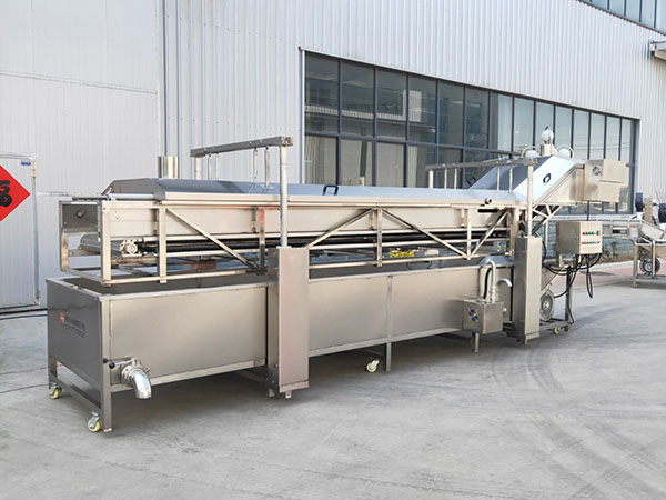 主要工作原理:物料由入料端進入漂燙機,經過機內高溫蒸煮,由鏈板緩慢輸送至出料端,進入下一道工序。